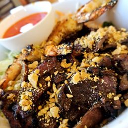 I found this gem on a whim. It was my first day off in 20 days. I must have gotten there at a downtime. It was very quiet. My host quickly seated me and took my order. I had to get the summer roll with shrimp and the #37 grilled shrimp and grilled pork over vermicelli noodles. I haven't had such a well-balanced blend of flavors and textures in ages. Sweet, salty, soft, and crunchy. I ate everything to my heart's content. Had I been alone in there, I would have licked my bowl clean. I left feeling giddy to have found such deliciousness. I have a feeling I'll be making my way there more often on my days off.